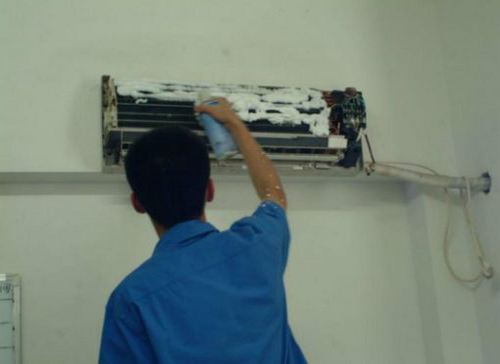 | 平安空调维修师傅给平安用户上门维修清洗空调。 |